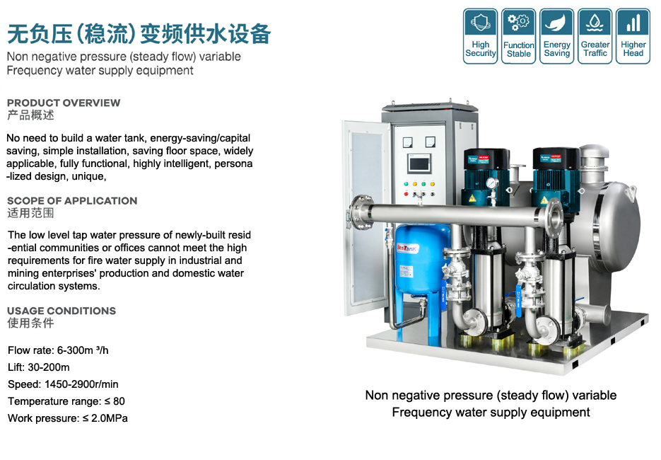 | Product Name: Non negative pressure (steady flow) variable frequency water supply equipment |
