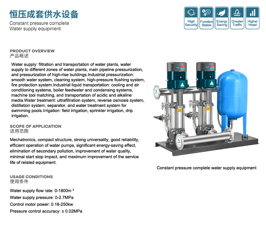 Non negative pressure (steady flow) variable frequency water supply equipment |